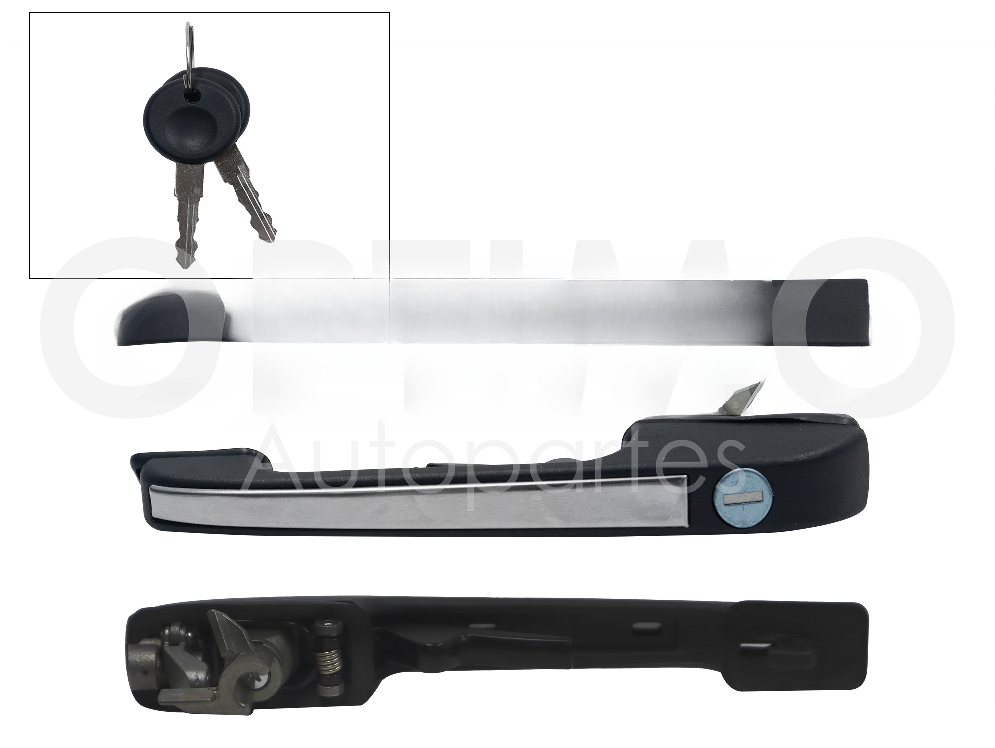 DescripciónMANIJA EXT DEL IZQ NEGRA LISA C/CROMO C/CILINDRO Y LLAVES