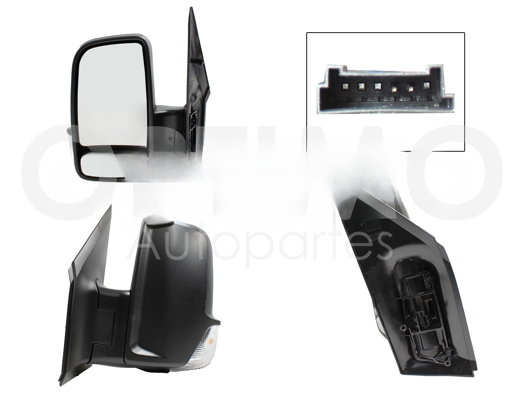 DescripciónESPEJO IZQ MANUAL NEGRO POROSO S/CONTROL C/LUZ DIRECCIONAL (2 LUNAS) (VW CRAFTER 08-18)